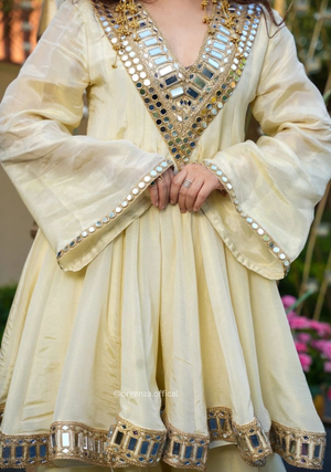 Real Mirror Work Jari Silk Sharara Suit Ready to Wear Premium Set