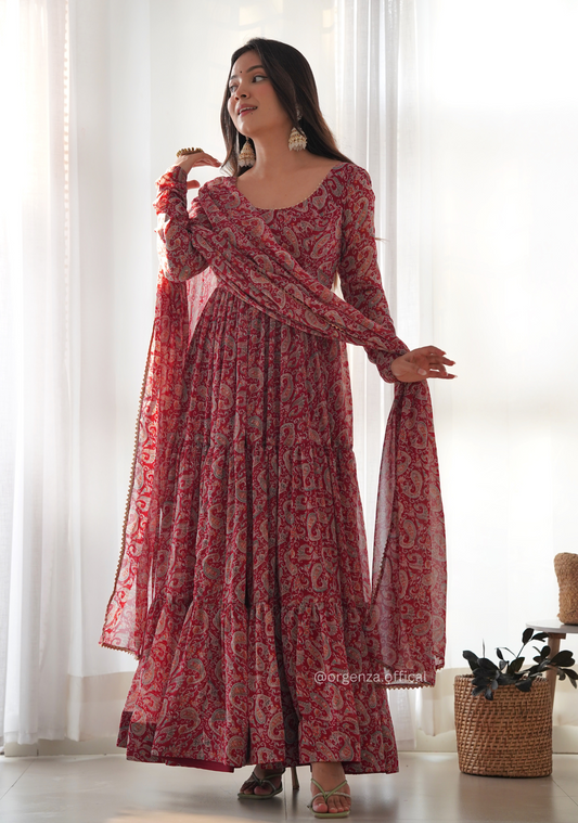 Pure Soft Fox Georgette Kalamkari Print Ruffle Anarkali