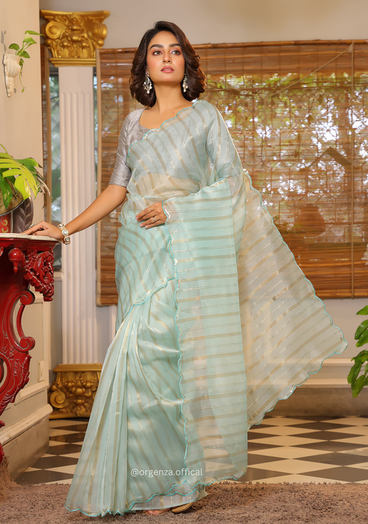 Kora Orange Organza Silk Saree With Elephant Zari Border