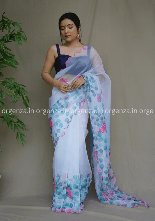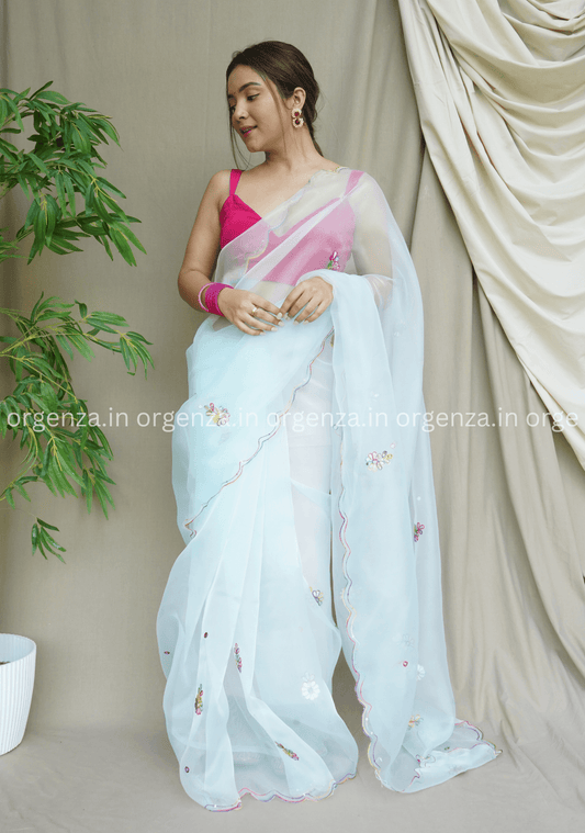 Sky Blue Colour Organza Silk Marble Print Anarkali Kurtis