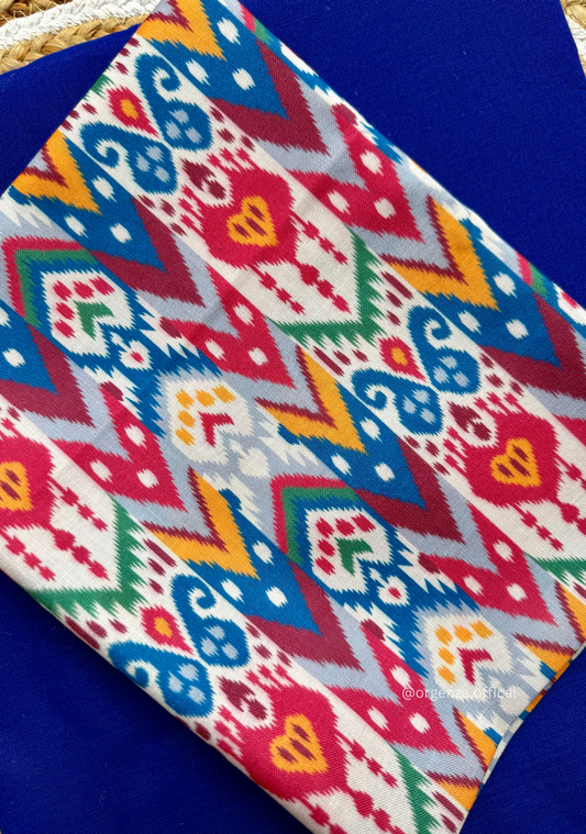 Blue Colour Cotton Saree With Elephant Print Blouse