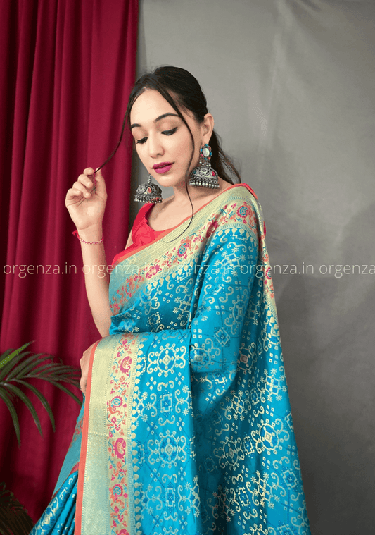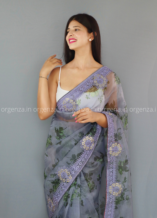 Orgenza || Banno Lavender Color Leheriya Design Embroidery Work Pure Organza Silk Saree With Blouse