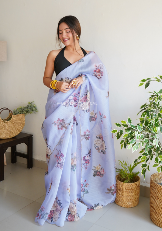 Light Blue Organza Saree With Handwork