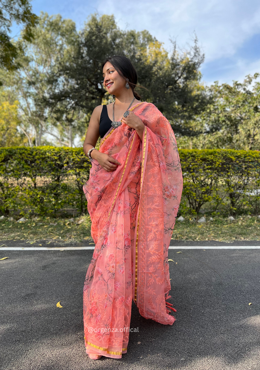 Peach Organza Saree With Weaved Work