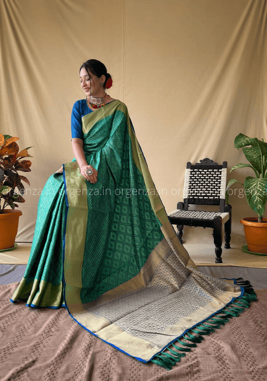 Rama Colour Saree With Weaving Zari