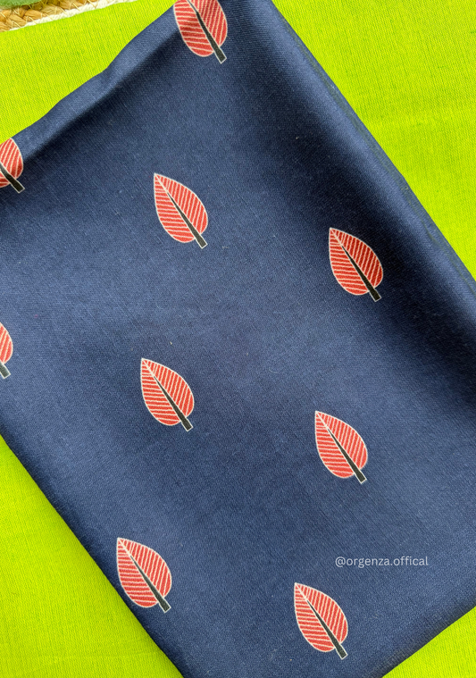 Purple Colour Cotton Saree With Purple Leaf Print Blouse