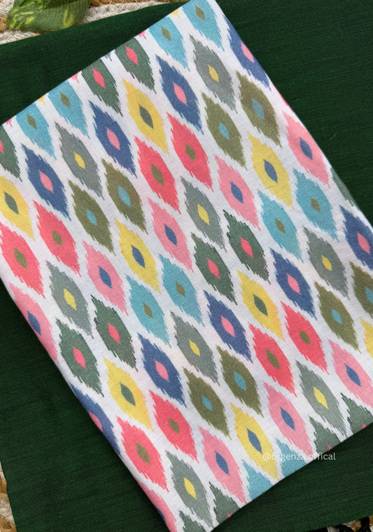 Green Colour Cotton Saree With Multi Print Blouse