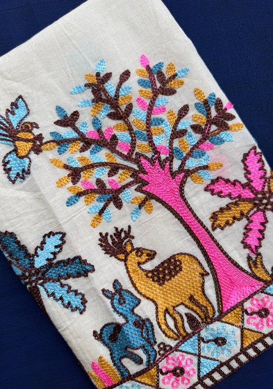 Blue Colour Cotton Saree With Deer Embroidery Blouse