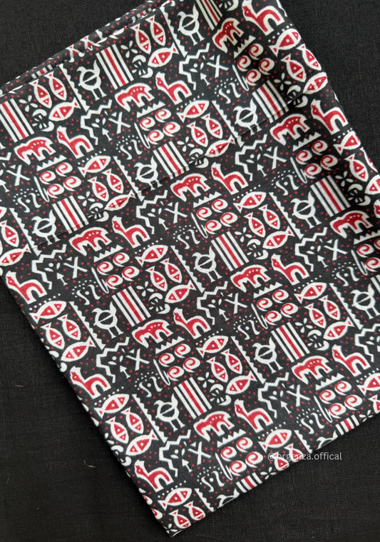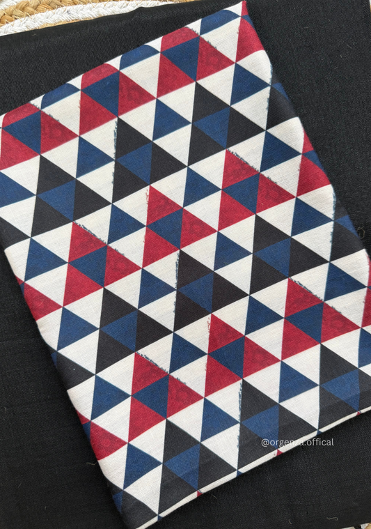 Black Colour Cotton Saree With Tringle Print Blouse
