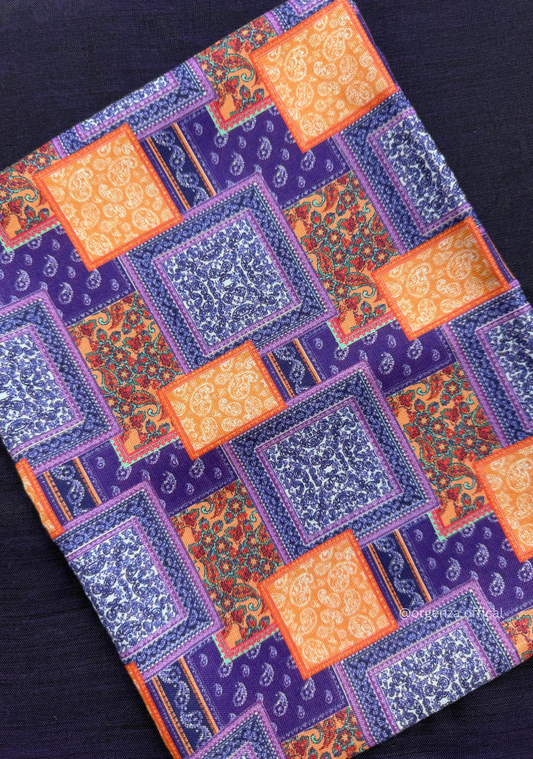 Purple Colour Cotton Saree With Box Print Blouse