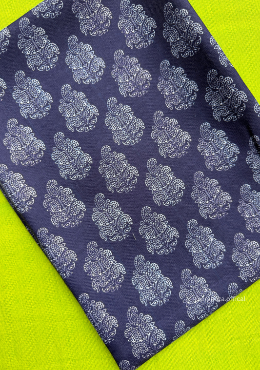Mustered Yellow Colour Cotton Saree Navy Blue Print Blouse