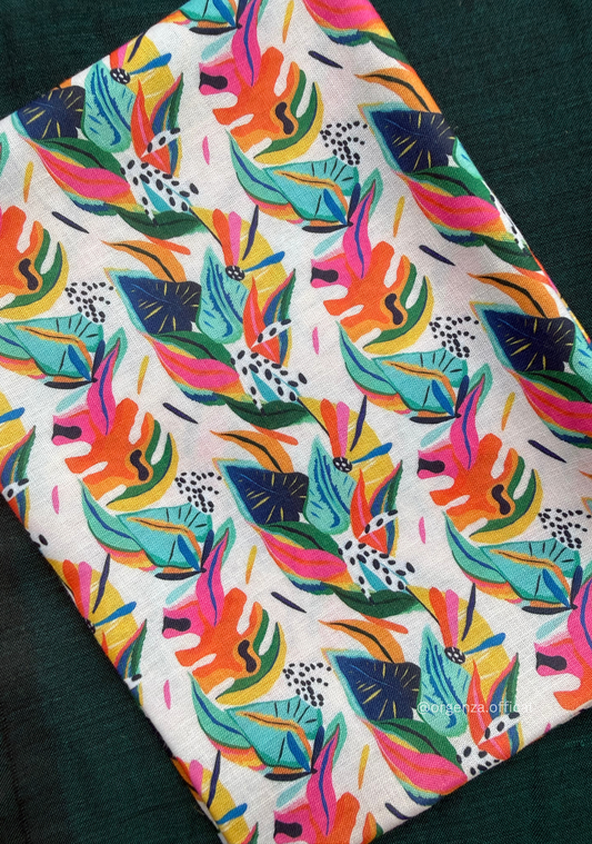 Parrot Green Colour Cotton Saree With Blue Leaf Printed Blouse