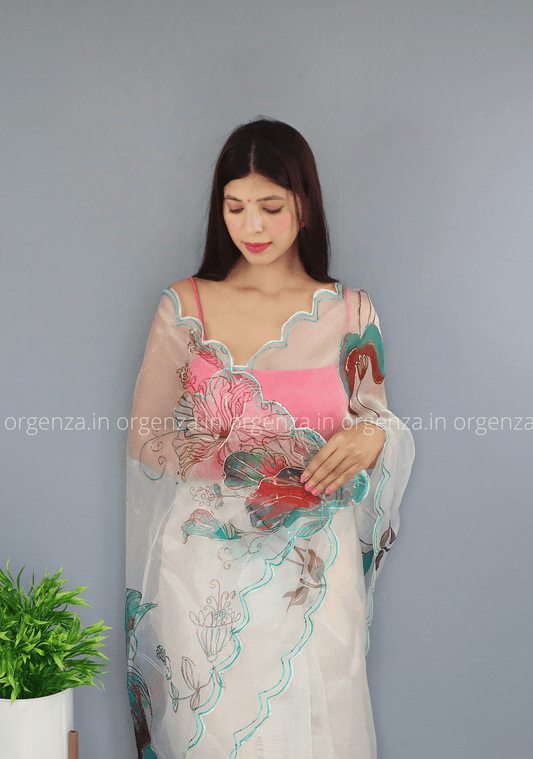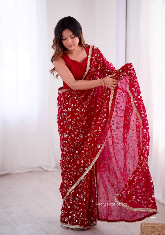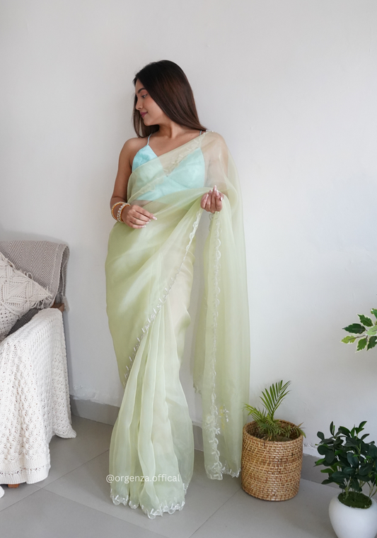 Blue Colour Jimmy Choo Saree With Mirror Work