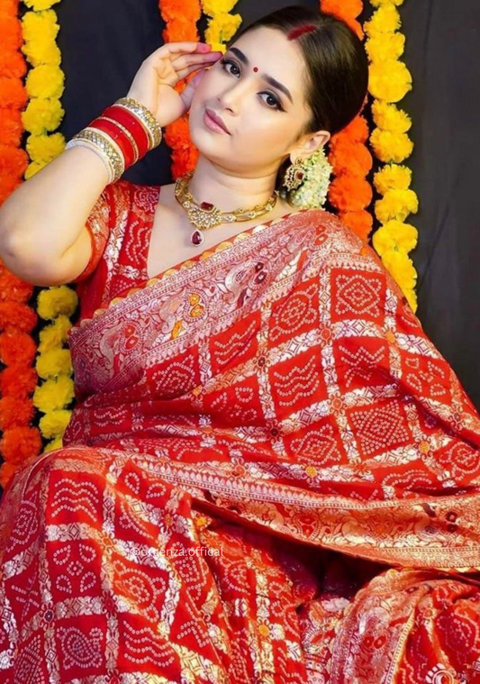 Karwachoth Special viscose Meenakari Bandhej Saree