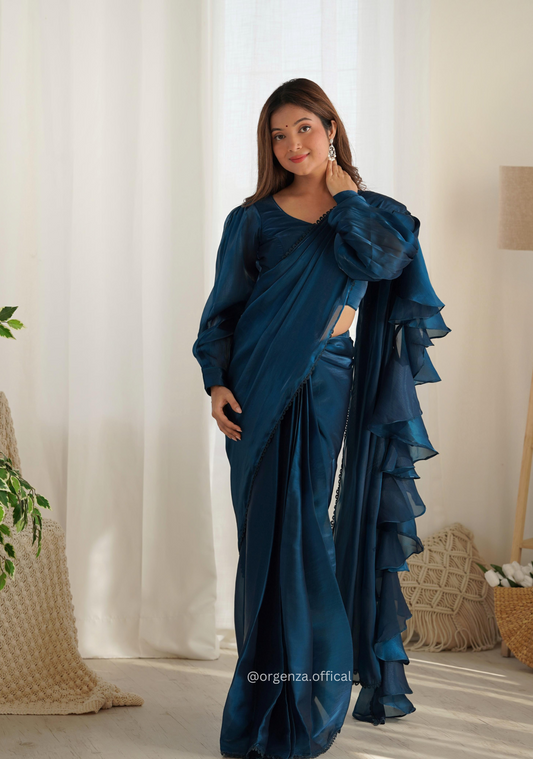 Ready To Wear Teal Blue Colour Jimmy Choo Saree