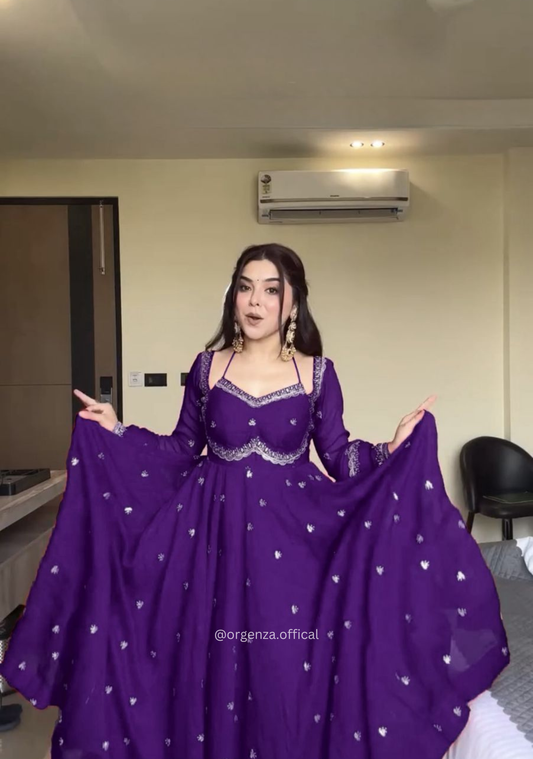 Grey Colour Organza Silk Digital Print Anarkali Kurtis