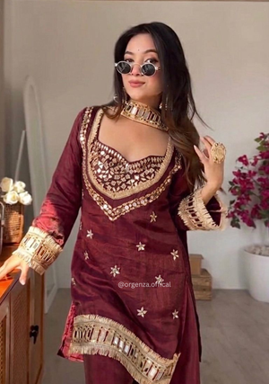 • Fendy Silk Mirror Work Sharara Suit Set – Ready to Wear Women’s Ethnic Outfit (4 PCS)