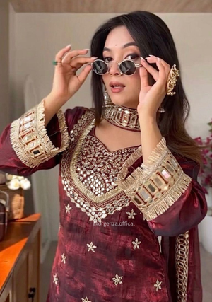 SKU: 5326 - maroon sharara mirror set-1