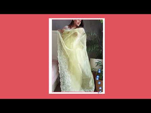 Yellow Colour Organza Saree With Floral Work - Orgenza Store