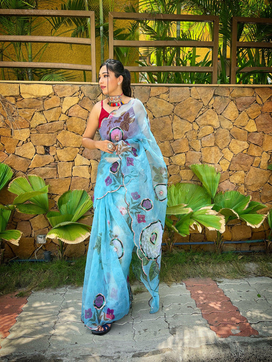 Soft Organza Multi Sky Colour With Readymade Blouse