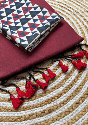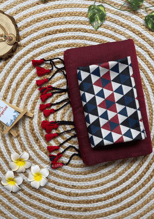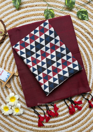 Maroon Colour Cotton Saree With Tringle Print Blouse