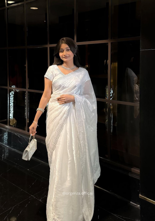 Orgenza || Light Lemon Color Moh Maya Heavy Gotta Patti Work And Pure Organza Silk Saree With Blouse