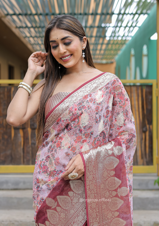 Baby Pink Colour Pure Organza Silk Floral Anarkali Kurtis