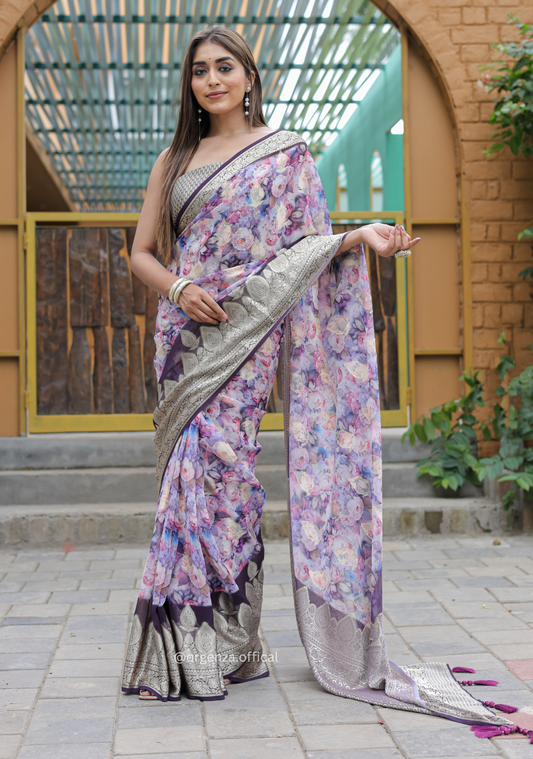 Purple Colour Pure Organza Silk Floral Anarkali Kurtis