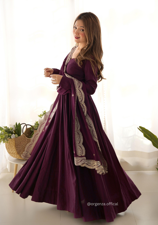 Purple Colour Star Georgette Fabric Ruffle Anarkali Kurti