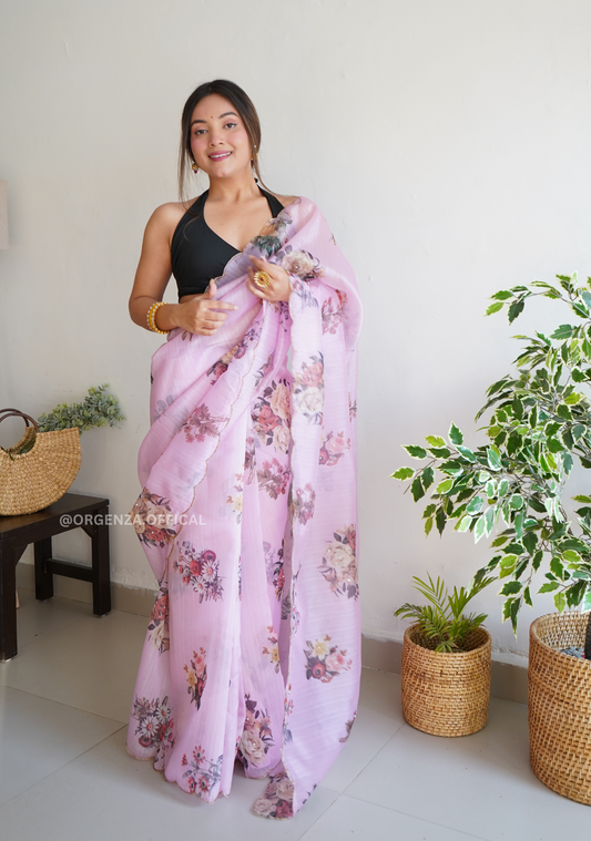 Orgenza || Off White Color Embroidery Work Heavy Georgette Silk Saree With Running Blouse