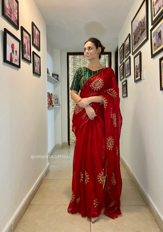 Pure Chiffon Zari Silk Saree With Embroidery Work