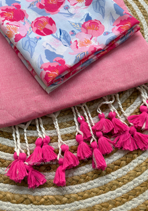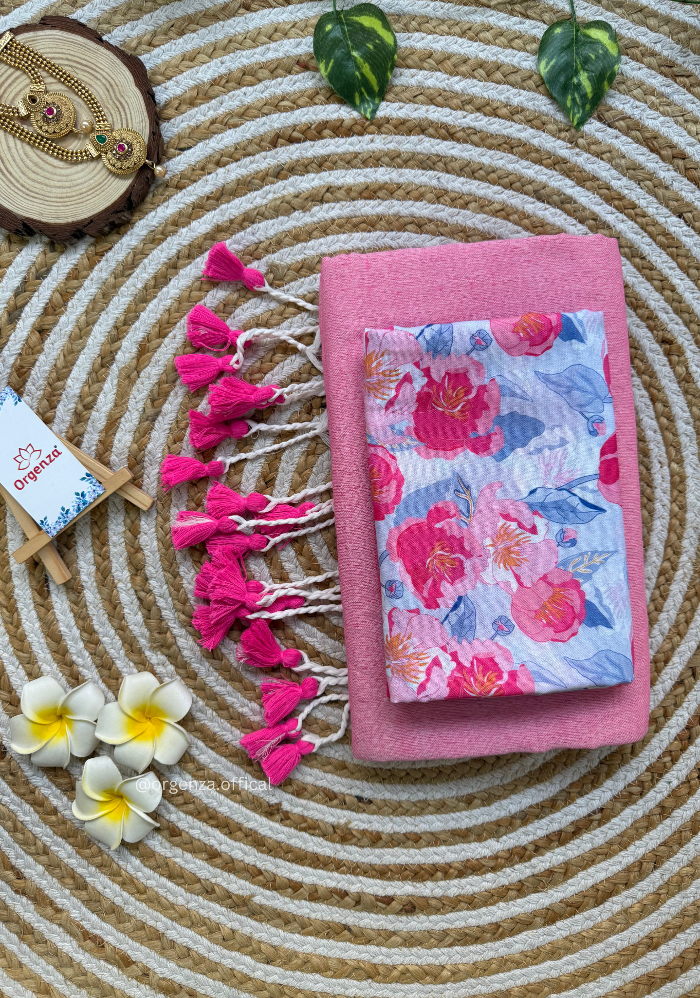 Baby Pink Colour Cotton Saree With Baby Pink Flower Print Blouse