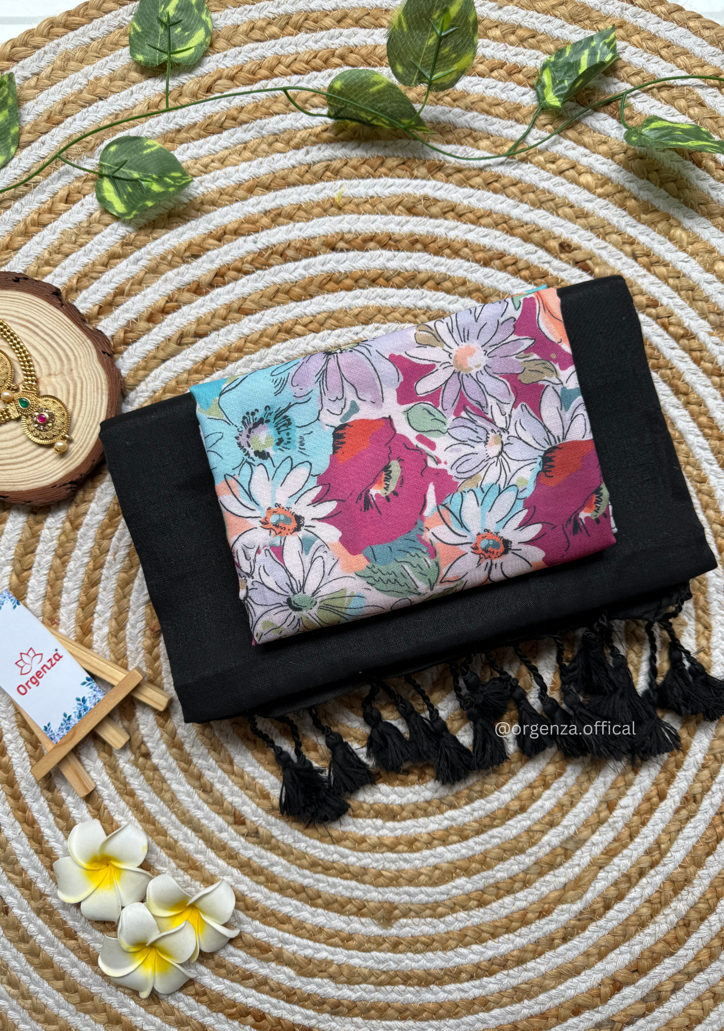 Orgenza Sky Purple Color Pure Organza Silk And Stone Work And Printed Flower Saree With Contrast Blouse