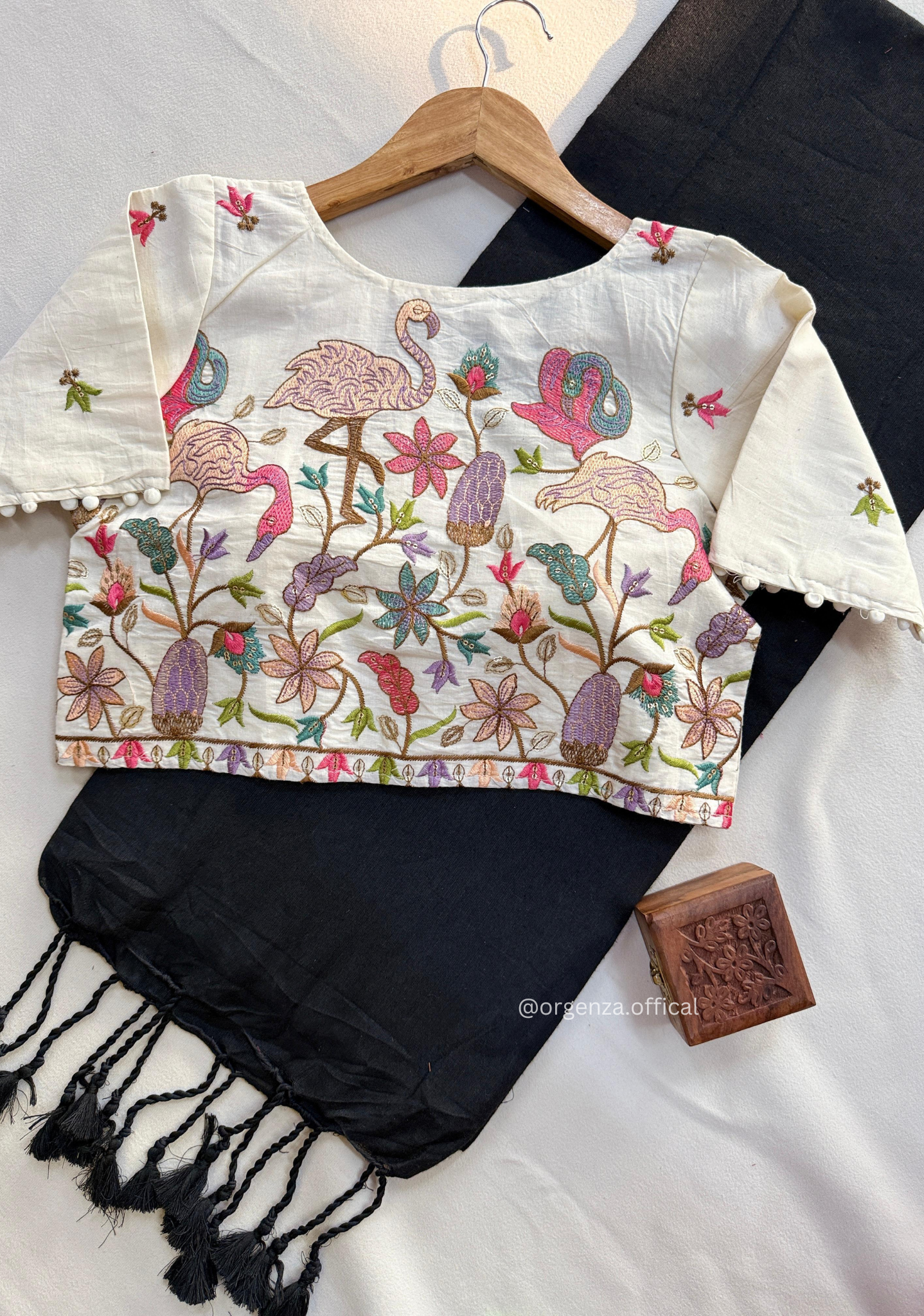- Blouse: Havey Embroidery And Aura Cotton Padded With Pure Cotton Lining