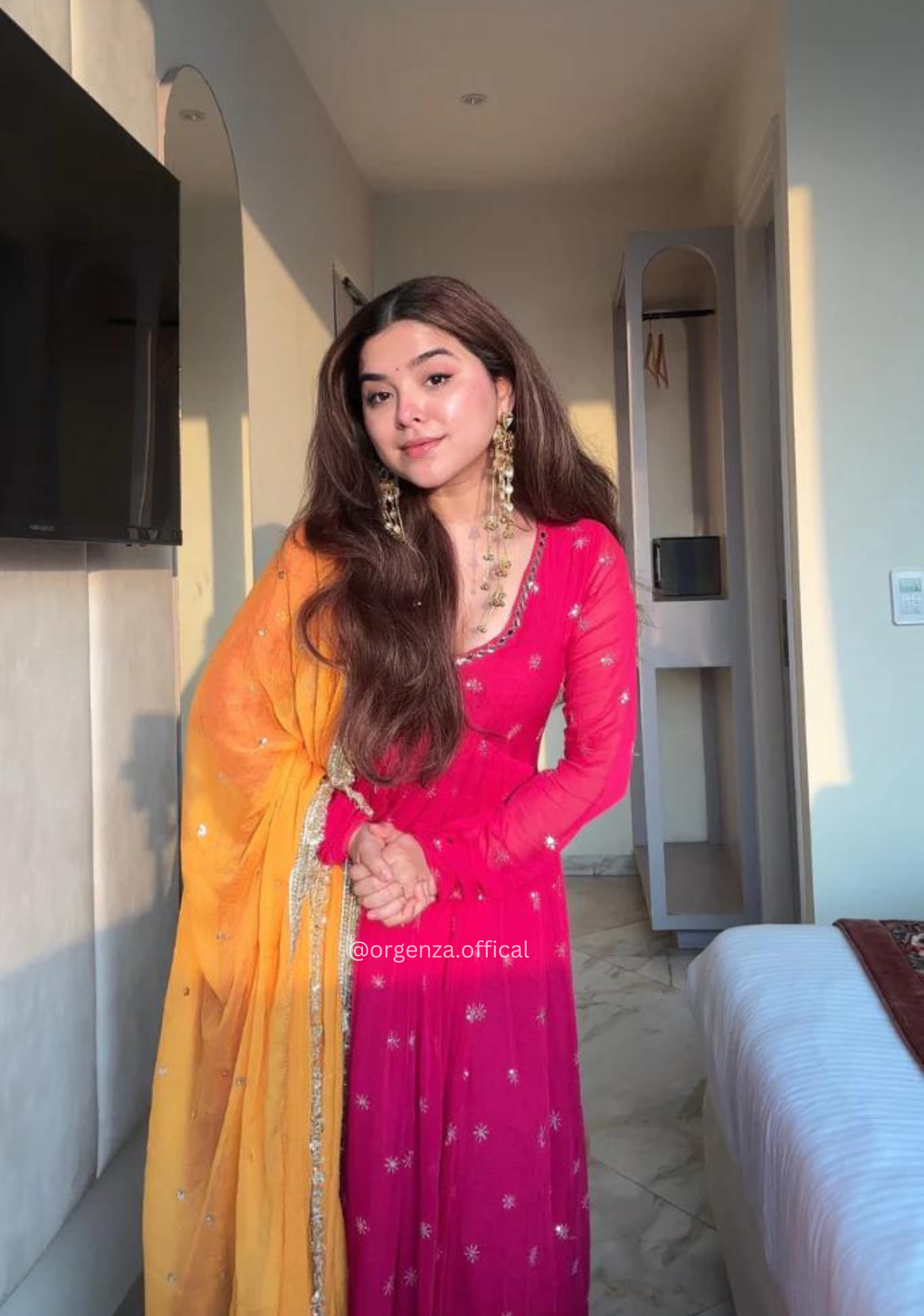 Thank you for your lovely review! We are so glad to hear that you love the color of the Anarkali suit. We put a lot of effort into selecting the perfect shades for our designs. Thank you for choosing Orgenza.in, we hope you enjoy wearing the suit as much as we enjoyed creating it. Have a wonderful day!