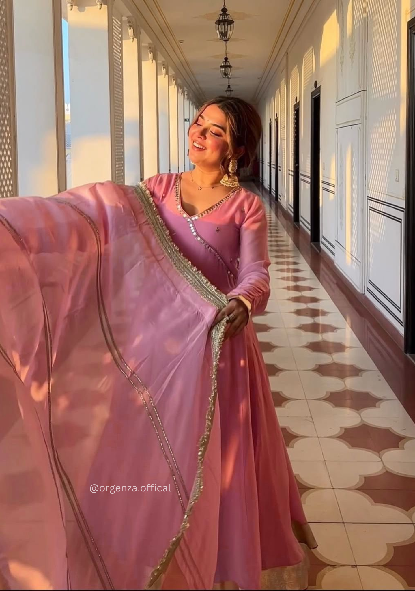 The Anarkali comes with a 4-meter flair, offering beautiful volume and flow, while the micro cotton inner ensures comfort for long wear. Paired with a matching organza pant and a fancy lace-bordered dupatta, this fully stitched set is perfect for weddings, festive occasions, parties, and special celebrations.
