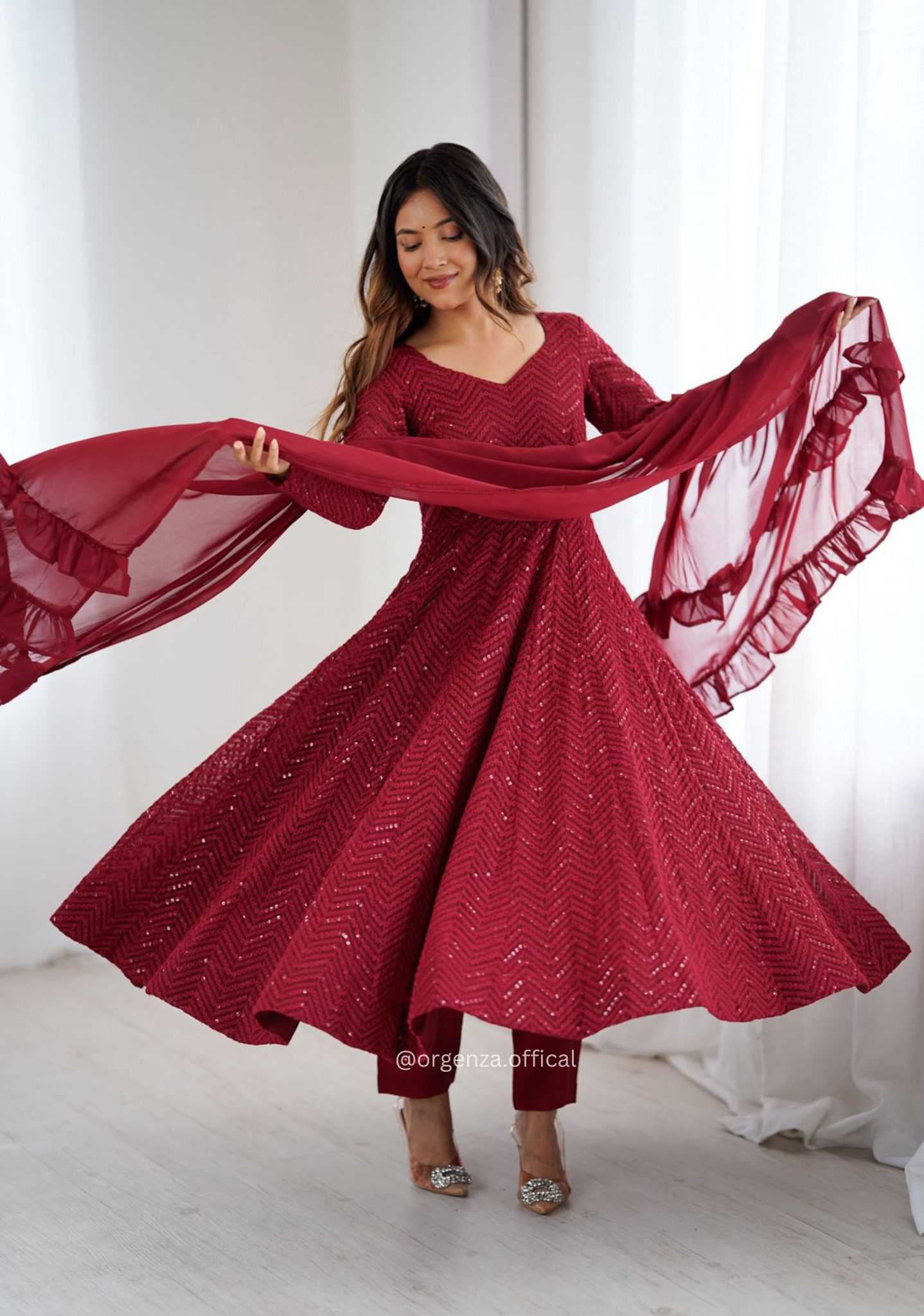 PURE FOX GEORGETTE LUKHNOWI SEQUENCE WORK FABRIC FULLY FLAIR ANARKALI, WITH DUPPTA SET, PENT READY TO WEAR