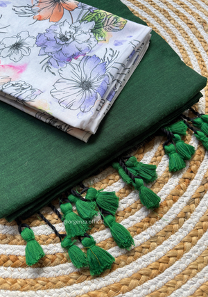 Green Colour Cotton Saree With Flower Print Blouse