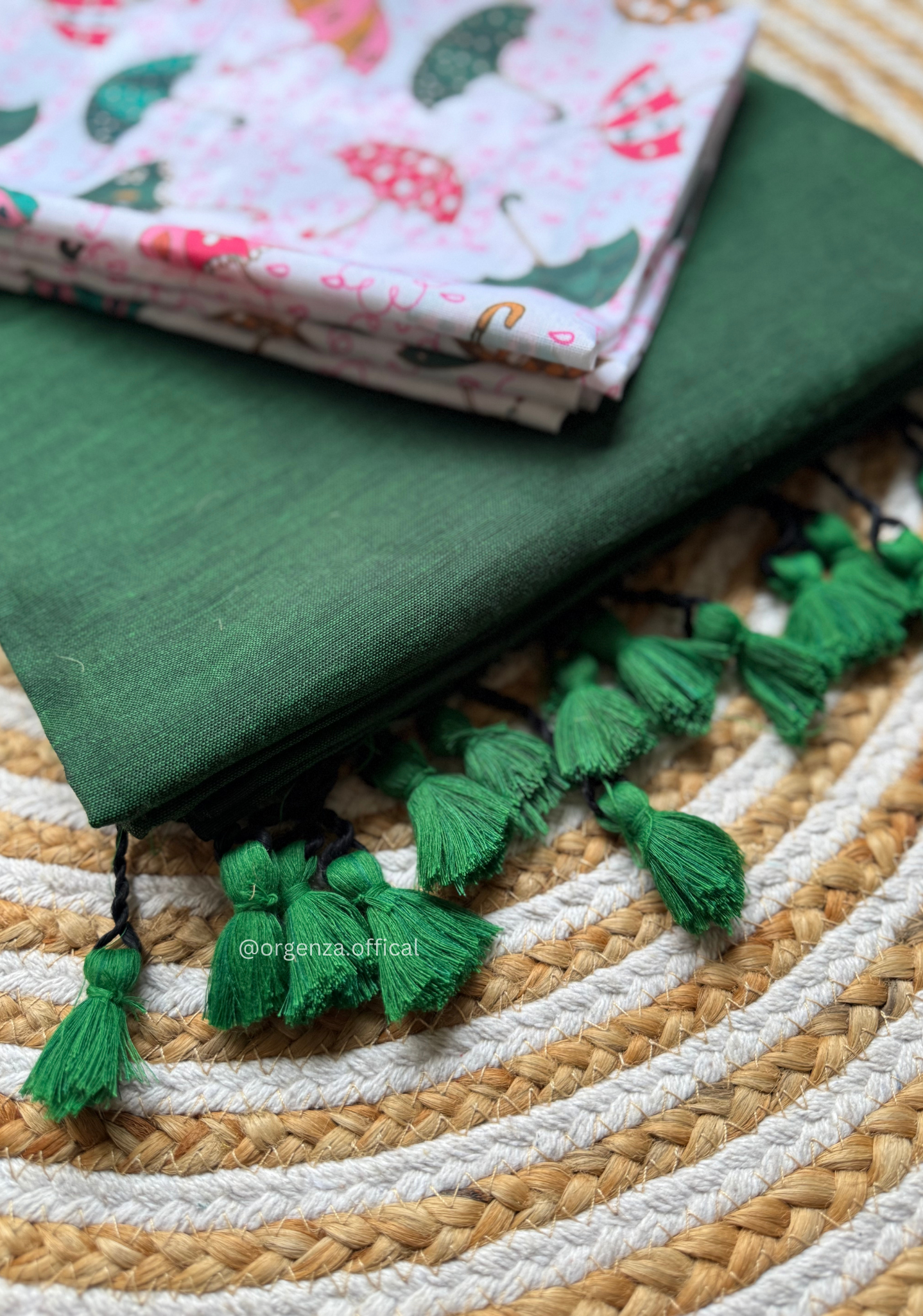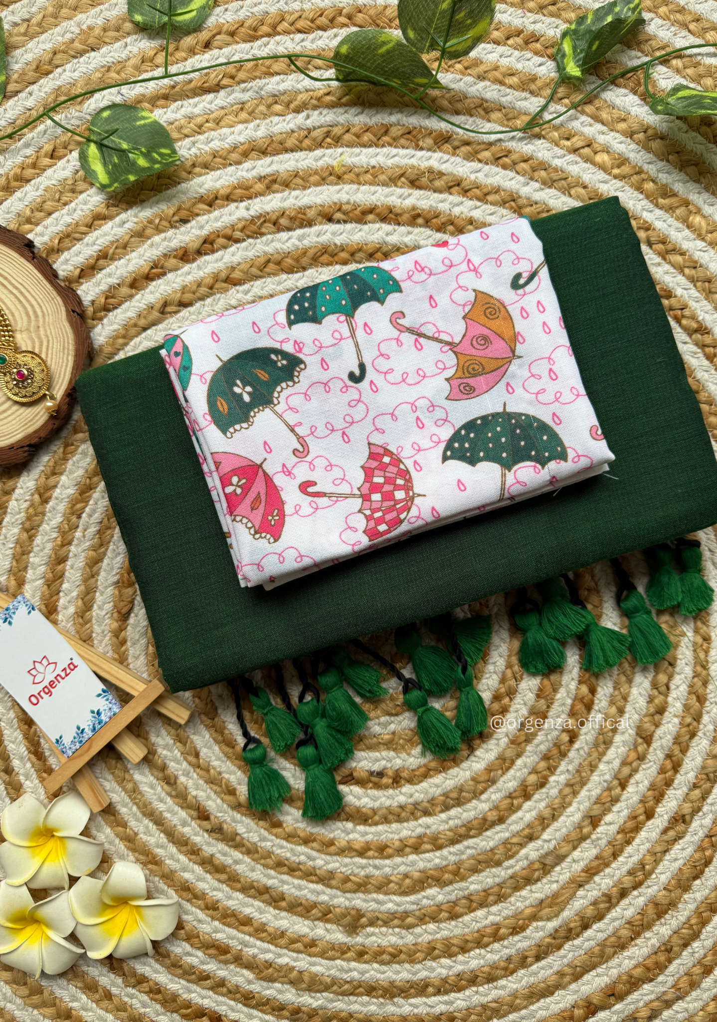 Green Colour Cotton Saree With Umbrella Print Blouse