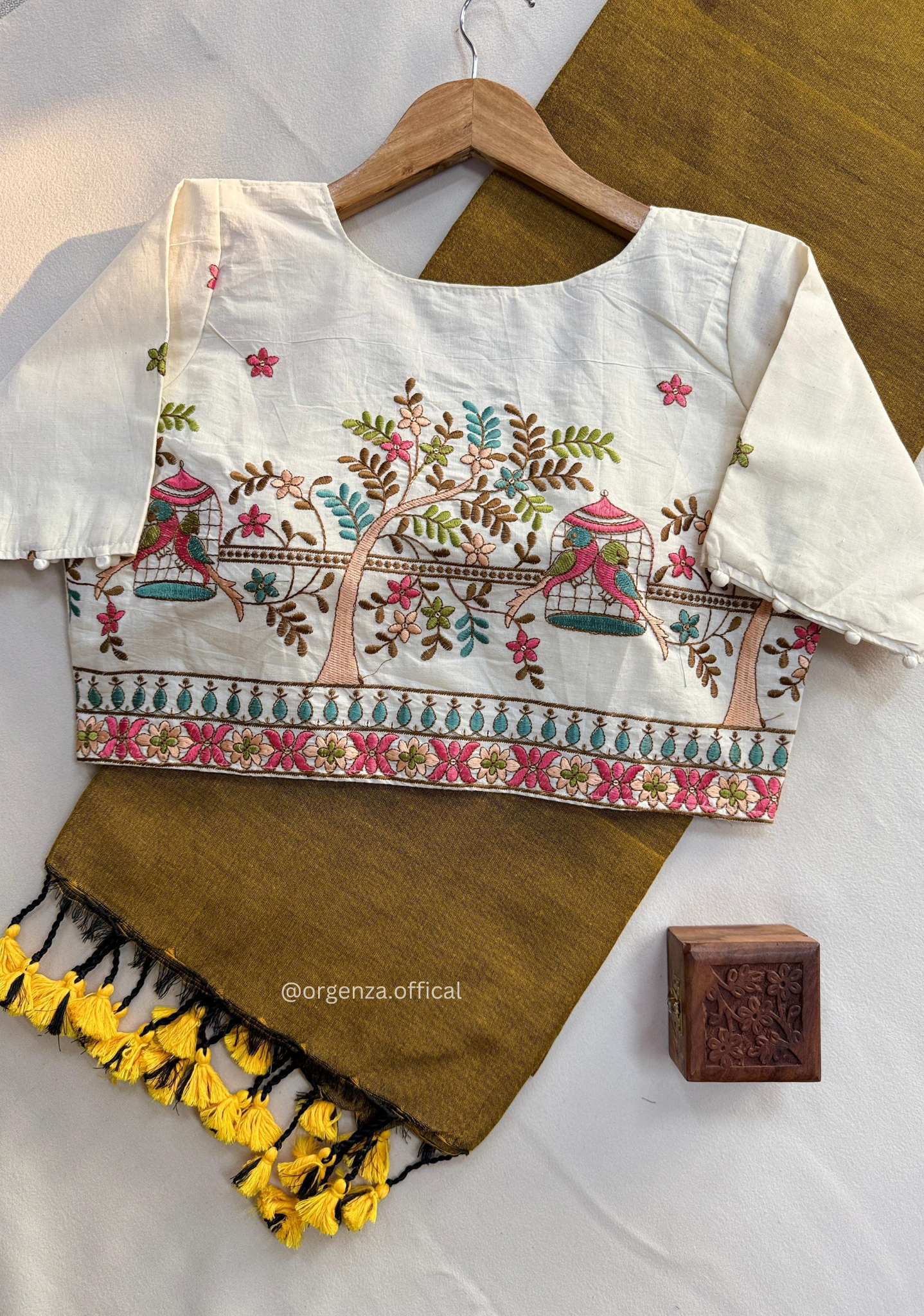 - Blouse: Havey Embroidery And Aura Cotton Padded With Pure Cotton Lining