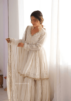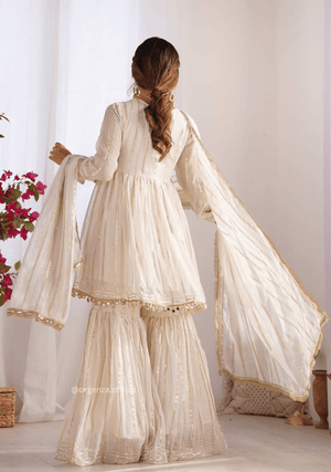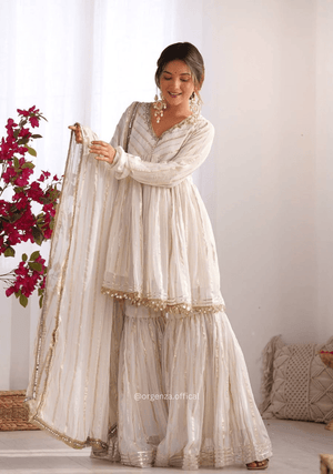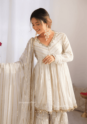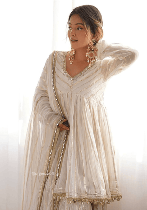 Off White Colour Kediya Sharara Palazzo Fully Stitched Kurti