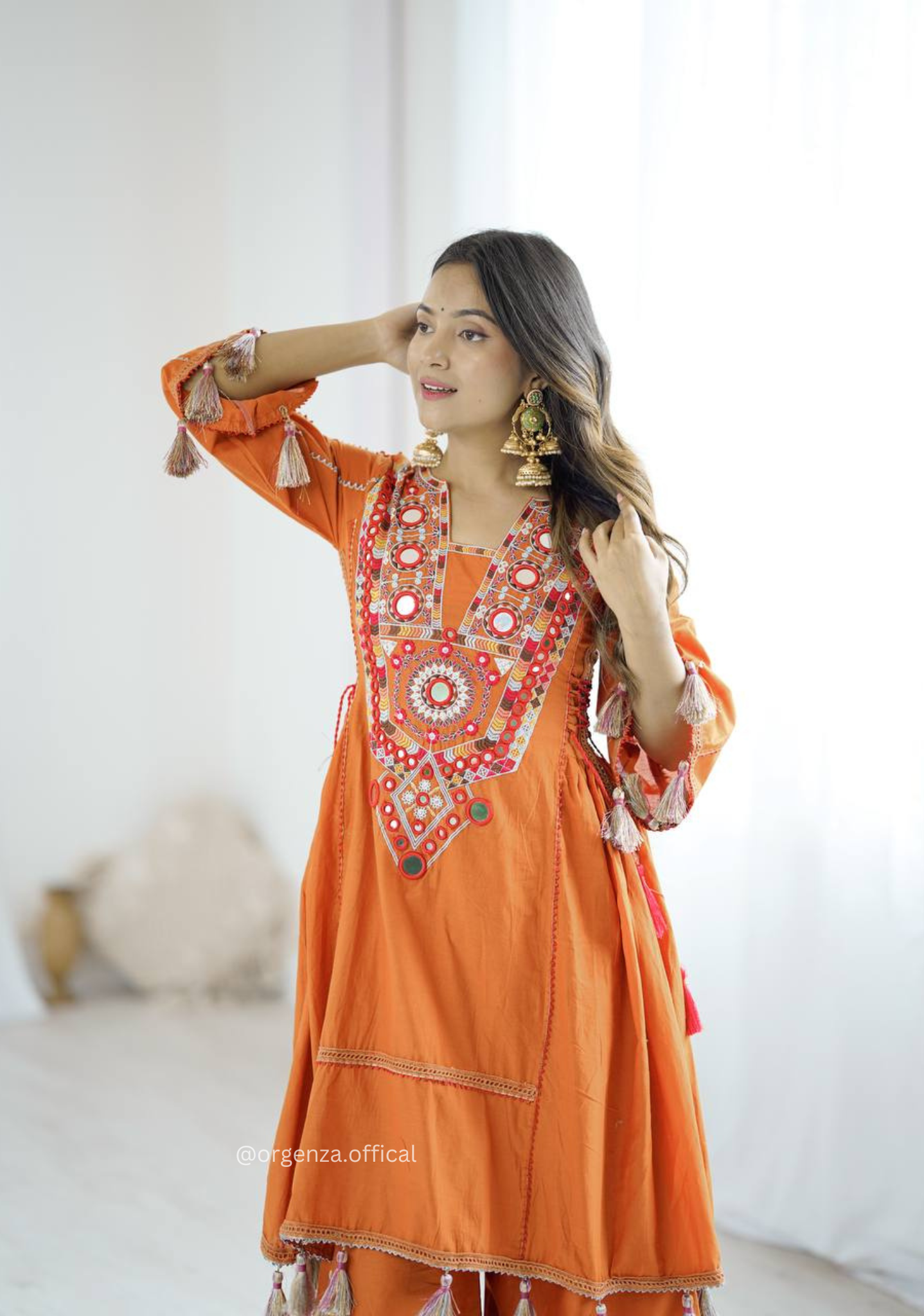 • Orange Colour Premium Designer Co-ord Set