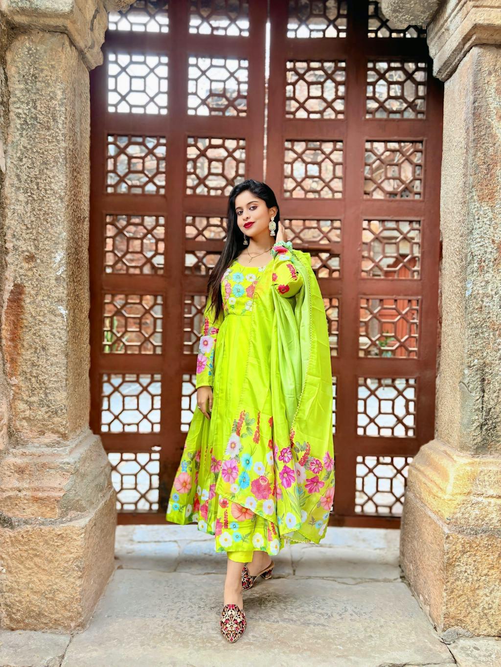 SKU: Liril Green Floral Organza Kurtis