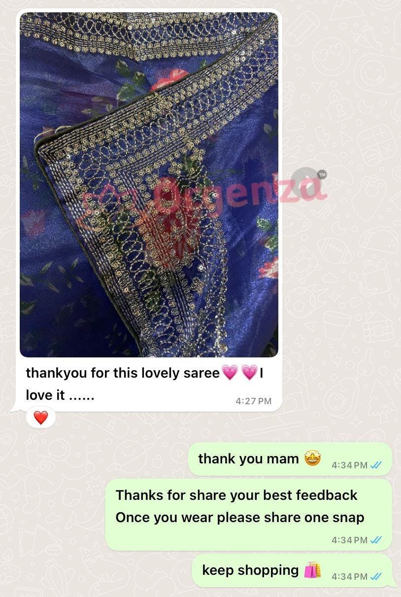 Orgenza Navy blue Color Pure Organza Silk Saree And  Grey Codding Sequence Work - Orgenza Store