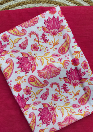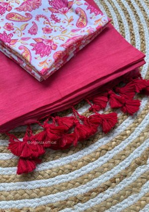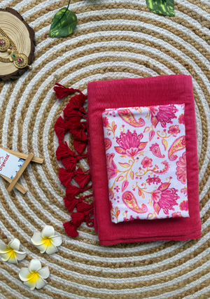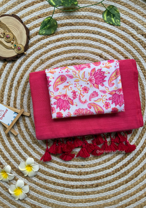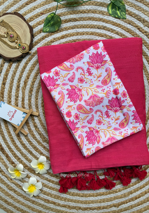 Pink Colour Cotton Saree With White Pink Multi Print Blouse