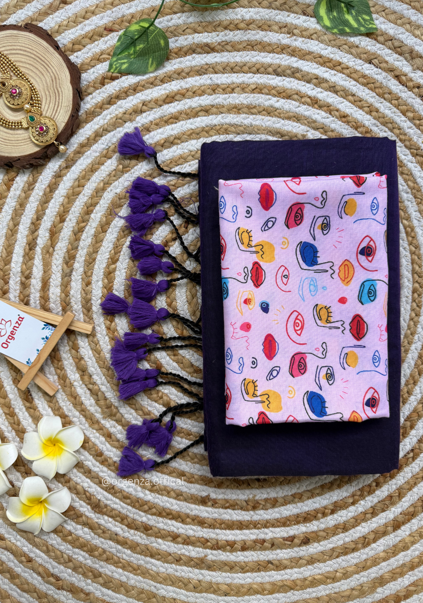 Orgenza Sky Purple Color Pure Organza Silk And Stone Work And Printed Flower Saree With Contrast Blouse