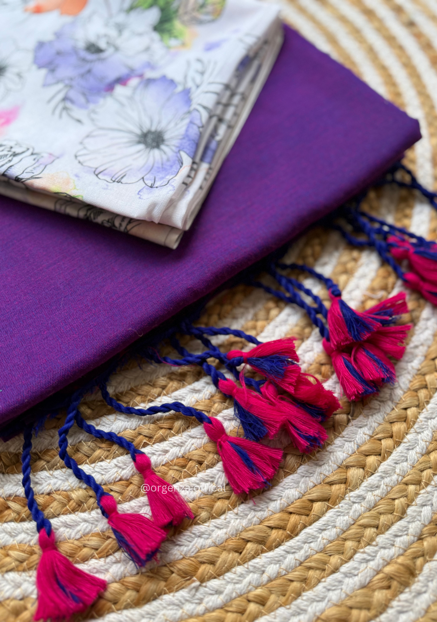 Purple Colour Cotton Saree With Purple Flower Print Blouse