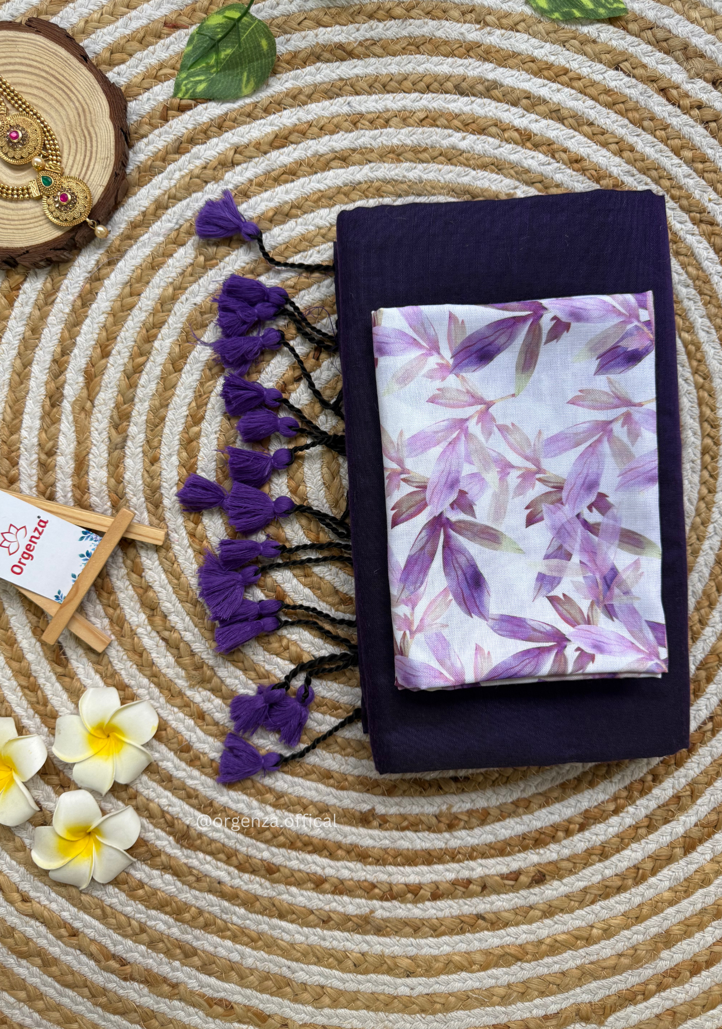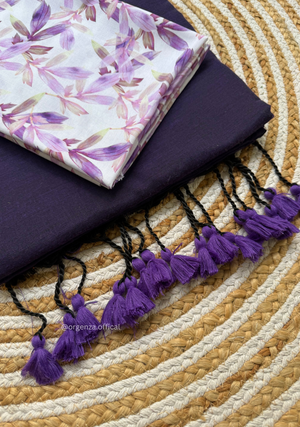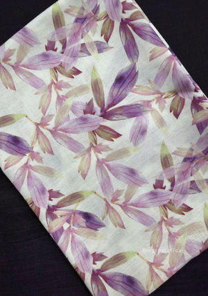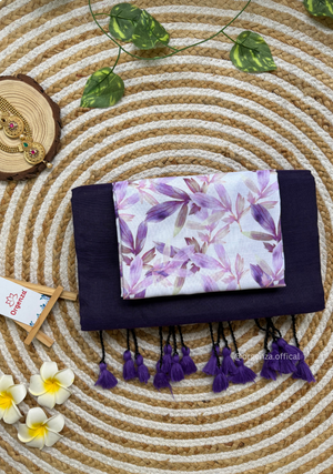 Purple Colour Cotton Saree With Purple Leaf Print Blouse