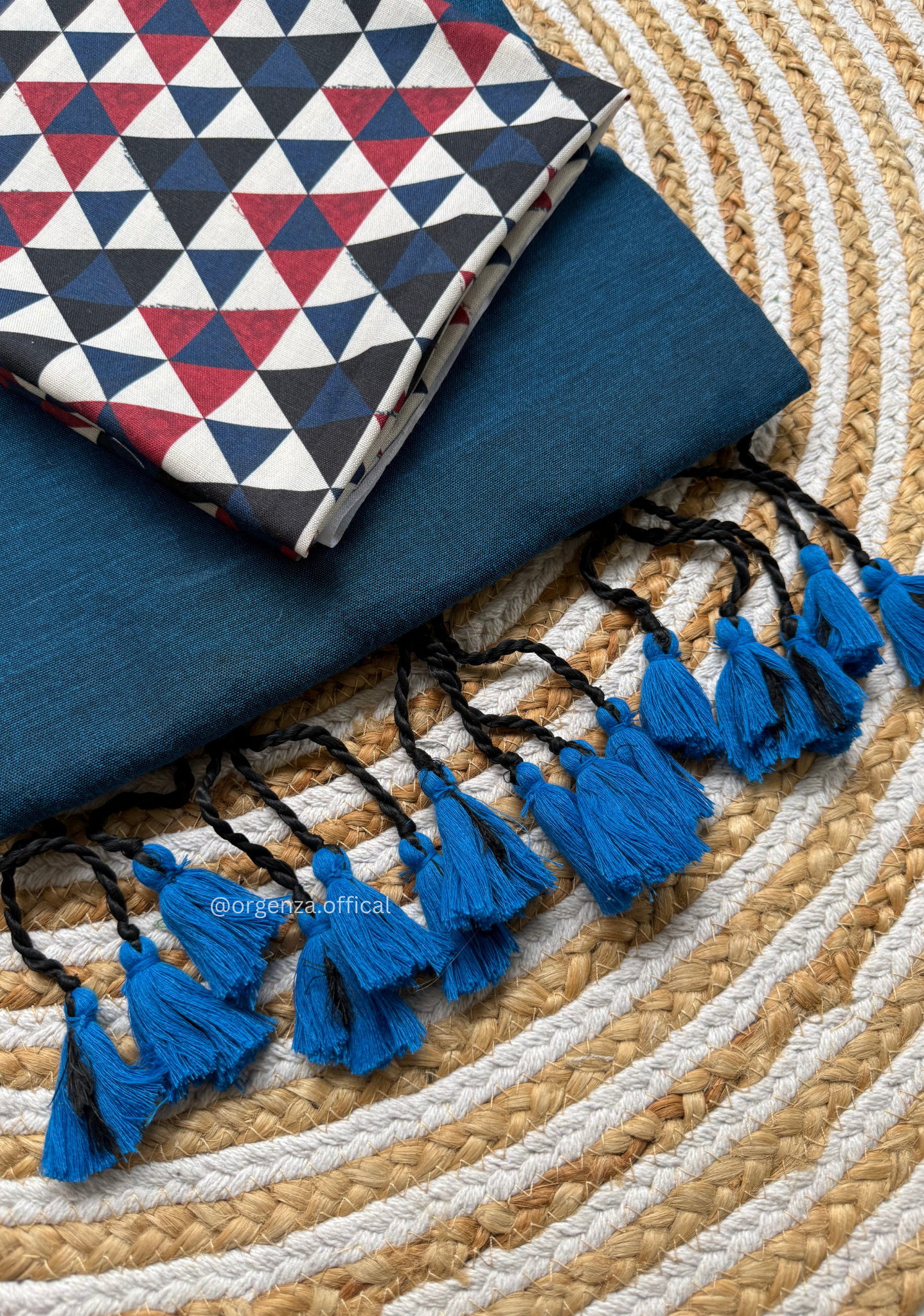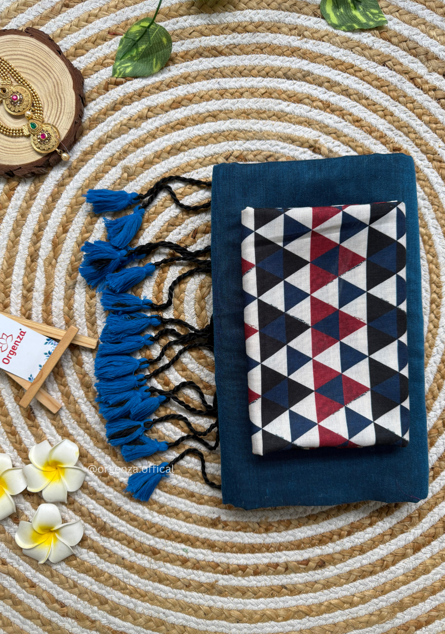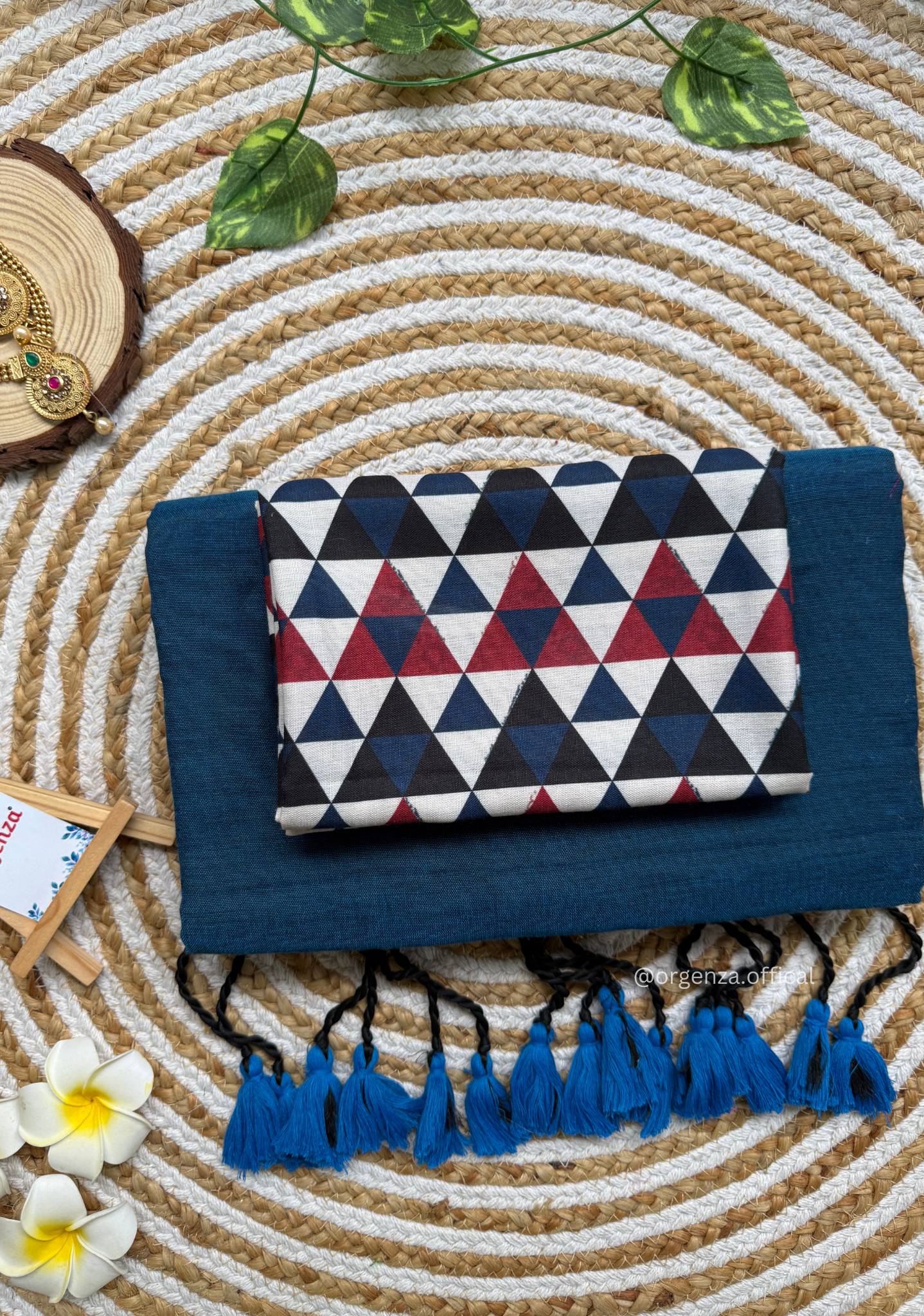 Rama Blue Colour Cotton Saree With Tringle Print Blouse