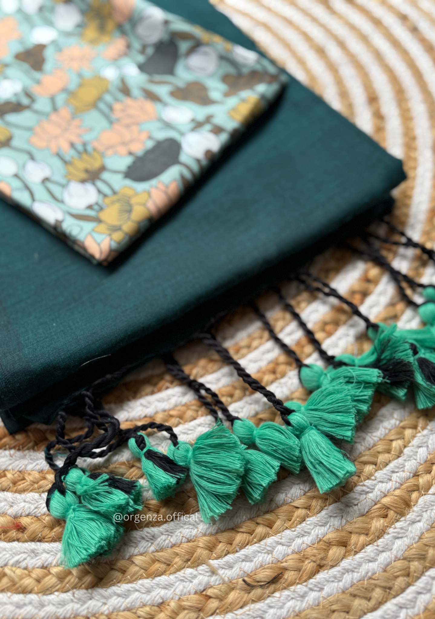 Rama Green Colour Cotton Saree With Flower Print Blouse